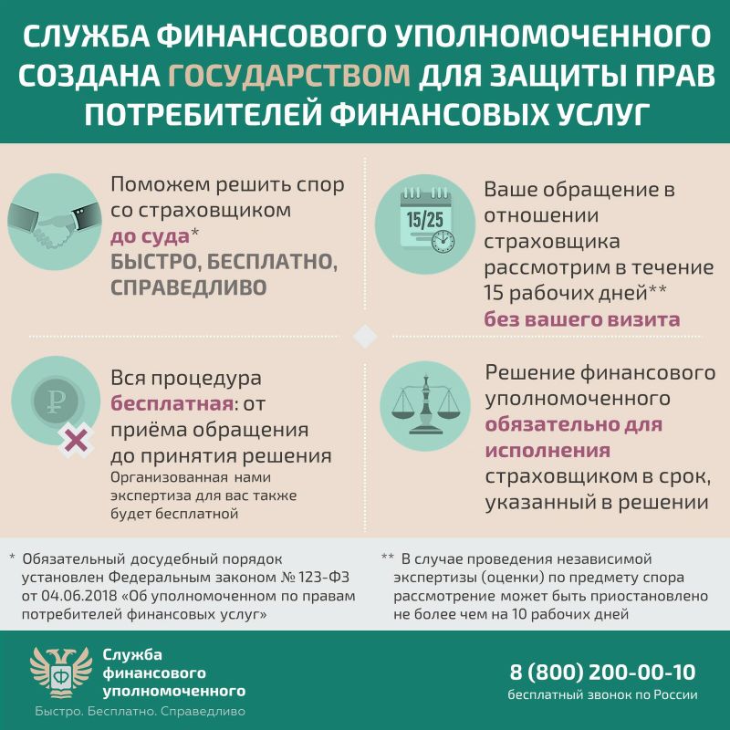 Важно знать! Если ваш спор со страховой организацией относится к компетенции финансового уполномоченного, то за защитой своих прав вы должны обратиться к финансовому уполномоченному до обращения в суд. Данный порядок установлен Федеральным законом № 123-ФЗ от 04.06.2018 «Об уполномоченном по правам потребителей финансовых услуг» и является обязательным для потребителей финансовых услуг.