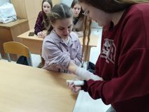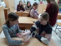 В школе по просьбе Министерства образования Тверской области в рамках реализации пункта 35 Плана мероприятий по обеспечению безопасности детей в период зимних каникул в 2024/25 учебном году было проведено практическое занятие на тему «Травматизм и меры оказания первой медицинской помощи».
