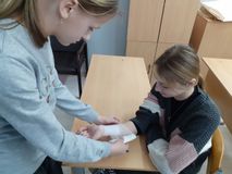 На этом занятии учитель ОБЗР рассказала ученикам о том, как оказывать первую помощь при различных травмах и несчастных случаях.